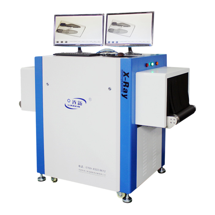 X光機(jī)通過發(fā)射高能電磁波穿透手袋材料,不同密度的物質(zhì)對X射線的吸收程度差異形成灰度圖像。金屬因原子序數(shù)高、密度大,在圖像中呈現(xiàn)深色陰影?。