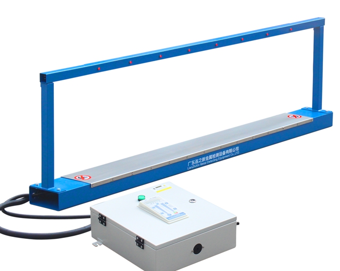用于宽幅的布匹、无纺布、喷胶棉、针刺棉、纸板、木板、裁片等物品的断针、刀片、金属碎片、铁磁性金属等金属杂质检测-过检针机。
